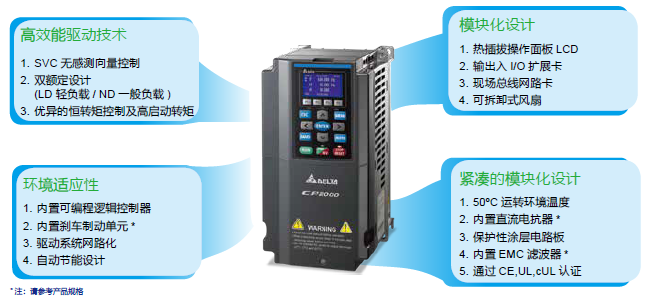 臺達(dá)風(fēng)機(jī)水泵專用矢量控制變頻器CP2000系列