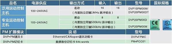 本系列強調提供高速執行速度,基本指令LD 0.13 μs, 應用指令MOV 2.1 μs,2/3/4/5/6軸直線補間運動控制,8組高速補捉(修標,測頻),比較輸出,對標遮沒(制袋應用)功能;4組差動輸出1MHz, 達到運動控制精準的目標。